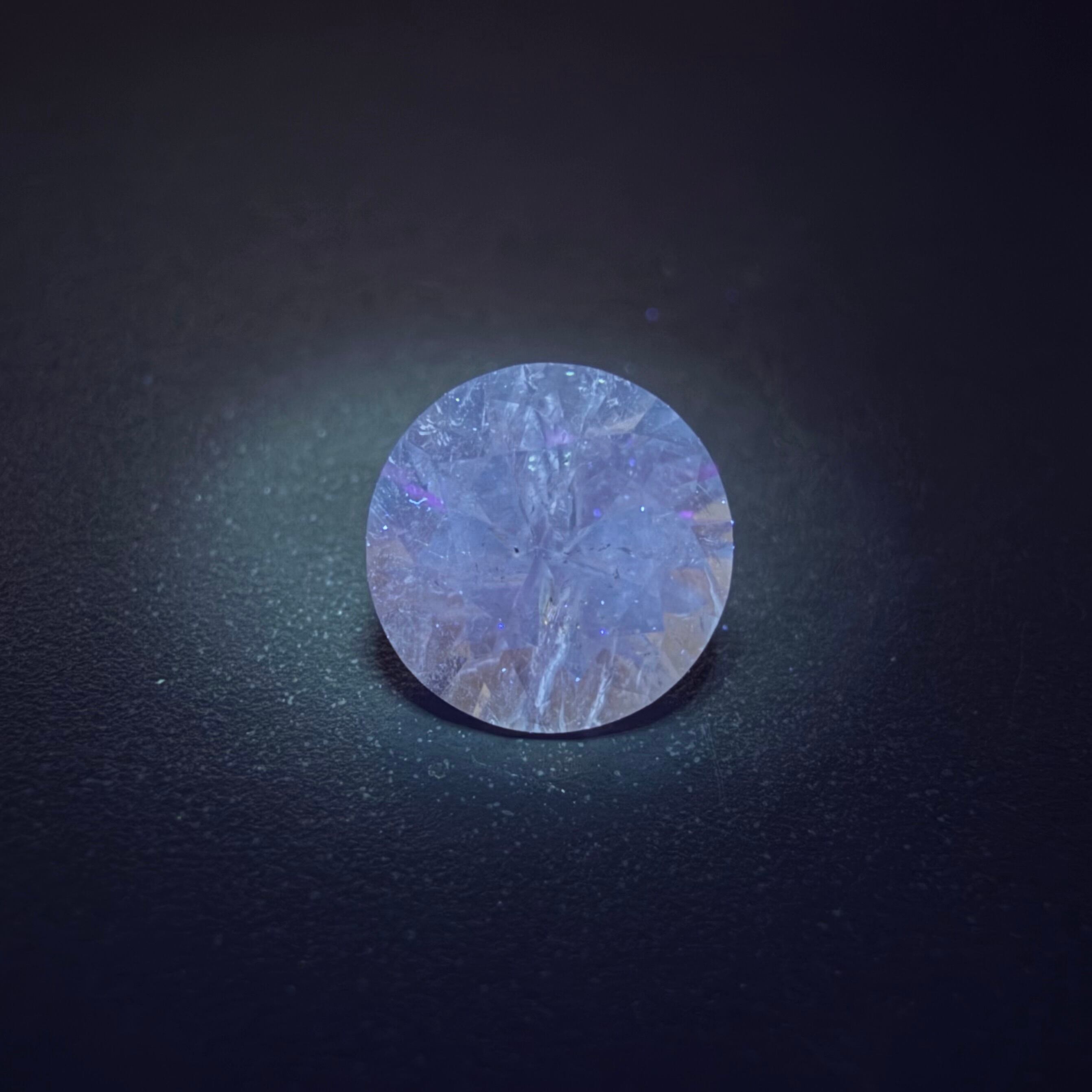 少しピンク味を帯びたブルーに淡く蛍光するので、